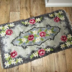 Virkad begagnad pläd med mormorsrutor 65 cm x 125 cm Fint skick