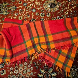 Röd/orange pläd med fransar