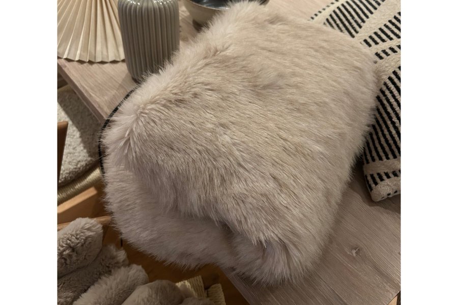 Från hm, ca 130 x170. Endast legat på soffan, inte använd.