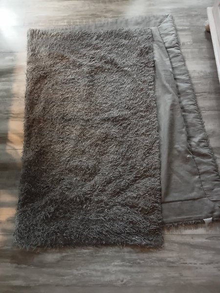 pläd/filt/överkast med glittertråd som va lurvig men blev inte de efter tvätt. Kanske går kammar lurvig igen? 150×115 cm ca