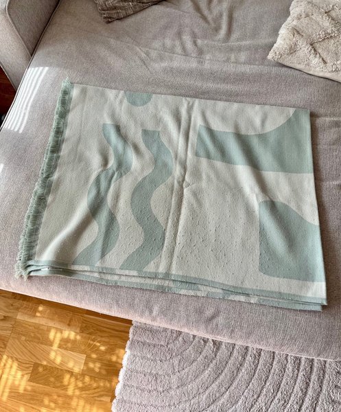 Stilig pläd/filt i grön/beige.