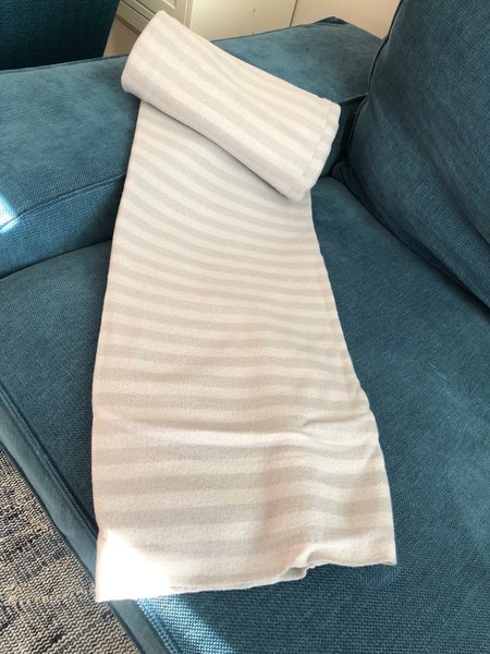 1 grå, svagt randad, mjuk pläd. Oanvänd.