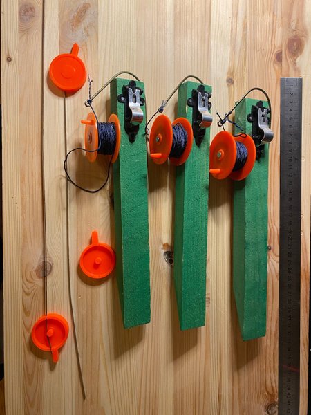 Tre st angeldon, de är kompletta förutom ett där metallfjädern till vippan har försvunnit.