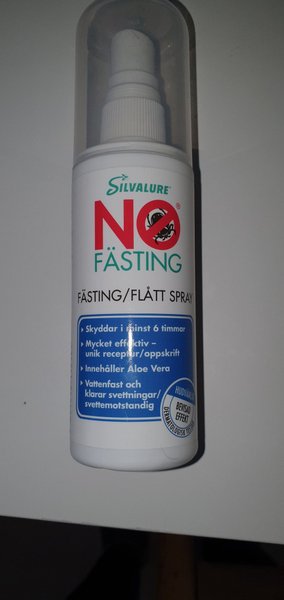 Silvalure No Fästing fästing spray skyddar i minst 6 timmar. Den är mycket effektiv och innehåller Aloe Vera. Vattenfast och klarar svettningar/svettemotståndig. Hudvänlig och dermatologisk testad.