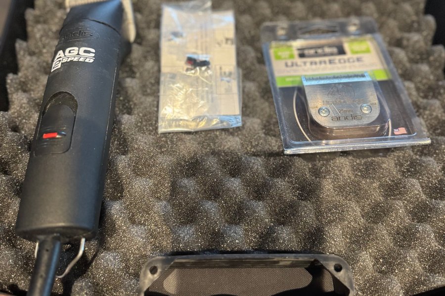 Tyst hundklippare + 2 skär (#10 & #40) – nyskick