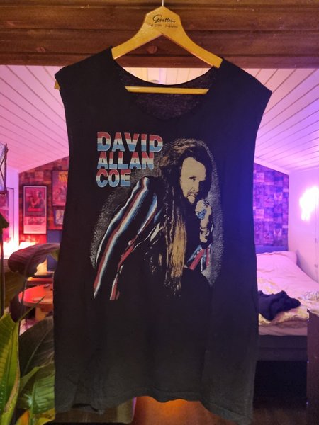 Avklippt t-shirt med tryck av David Allan Coe. Skulle tippa på att storleken är M.