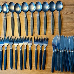 Udda bestick i samma serie, putsning behövs på skeden. Se bilder för skick. Katt finns i hemmet.