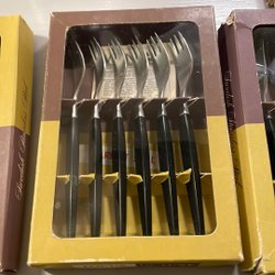 6 stycken dessert skedar i mycket fint skick. Böjd design som gör dem greppvänliga o stannar på kanten.