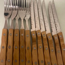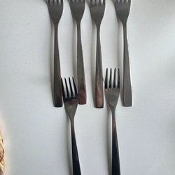 3 gafflar…har ett detaljerat mönster på handtaget, vilket ger en elegant touch till dukningen. Tillverkade i rostfritt stål.