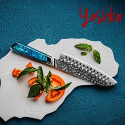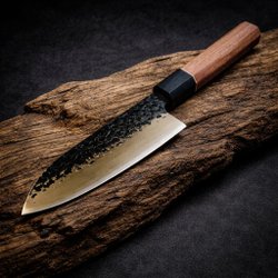 RYKY kockkniv, Launch Edition 1/250. Kniven är i damaskusstål och ett handtag i mörkt trä.
