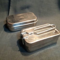 Fem stål/metall lådor för mat, förvaring eller liknande. Lätta att diska och använda.