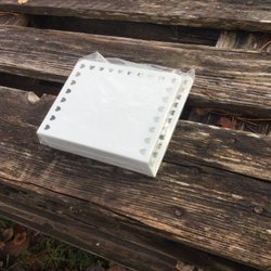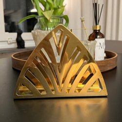 Servettställ i trä med blommönster.