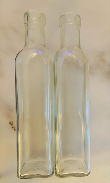 2 st glasflaskor. Perfekt för att förvara olja, vinäger eller andra vätskor. Flaskorna är i gott skick.