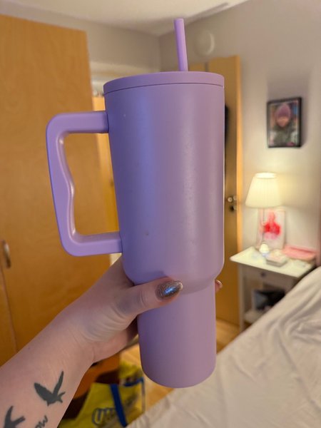 Lila mugg med sugrör