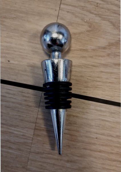 Stilfull Vinpropp i tung metall. Mycket elegant för vinflaskan