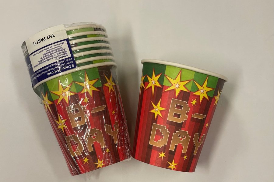 Pappersmuggar med Minecraft motiv.
