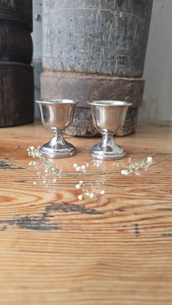 Två äggkoppar i metall
