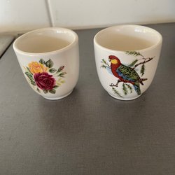 2 st äggkoppar i trä! De har en naturlig träfinish! I fint skick!