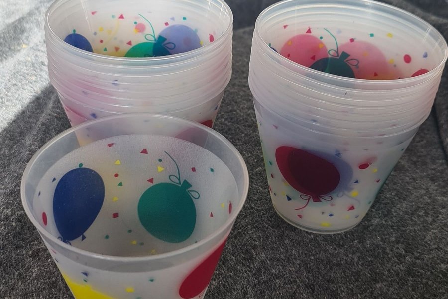 Partymuggar med ballonger och konfetti motiv perfekt till barnkalaset. 17 st.