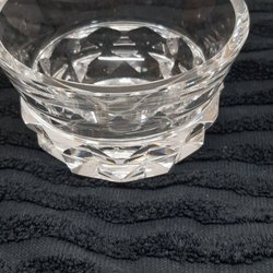 En kristall skål "corona" Orrefors av Lars Hellström.Har en fyrkantig form med utskjutande hörn som ger den ett blommigt utseende, H8,5 D11,5 cm.