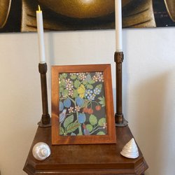 Nyköpt tavel/fotoram 12 x 12cm i trä dekorerad med Stig Lindbergs Blå Berså
