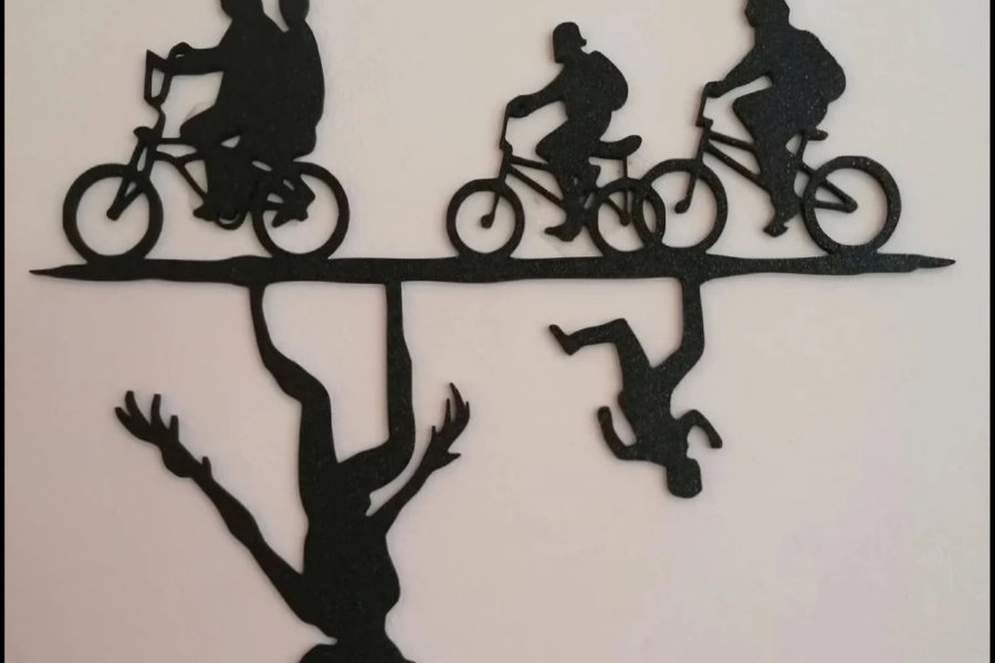 Transportera dig till Hawkins med denna siluett som fångar den ikoniska med barnen som cyklar ovanpå medans de skrämmande varelserna från "The Upside down" lurar under...