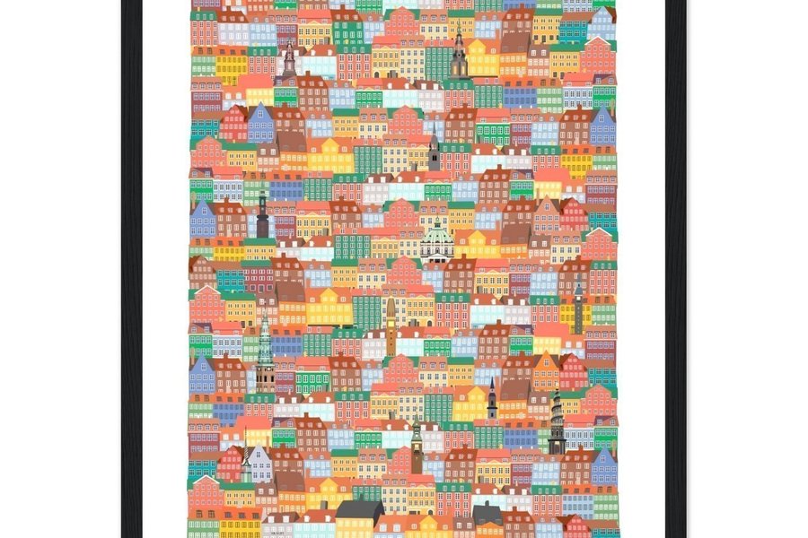 Köpenhamn, Nyhavn, Ramstorlek A3, andra format finns, Grafisk design av posterify eu