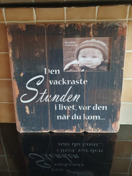 Fotoram med texten "Den vackraste stunden i livet, var den när du kom...". Bildstorlek 17,5x12,5 cm.
