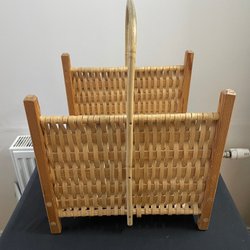 Praktiskt tidningsställ i rotting. Perfekt för att organisera dina tidningar och magasin t.ex. Den är i mycket gott skick, se bilderna och avgör själv. Mått: 330x240x140 mm