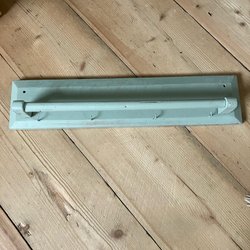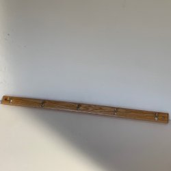 Två krokar i metall. Möjligen slaktkrokar.