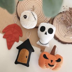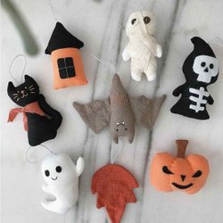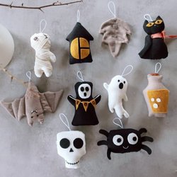 Ett charmigt set med 10 handgjorda ornament Haloweenmotiv. Perfekt för att dekorera hemmet.
