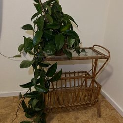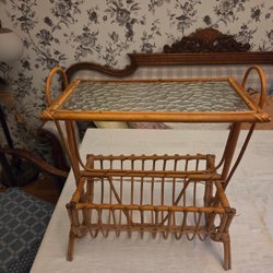 Retro tidningsställ med hjul. Längd 30 cm, bredd 19 cm, höjd ca 9 cm