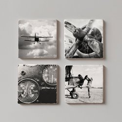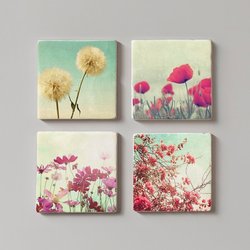 Glasunderlägg i marmor med kända ansikten - set om 4