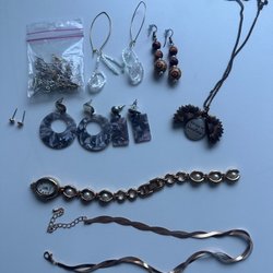 Här erbjuds en samling av diverse inredningsdetaljer. Bland annat två Kosta Boda flaskor, ljusstakar, skålar i glas, kopparformar och andra dekorativa objekt.