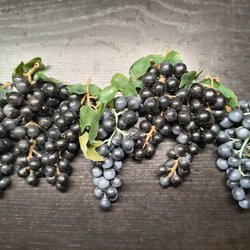 Dekorativa vindruvor i plast för att dekorera ditt hem. 6st stora klasar med vindruvor på ca 30cm längd. En påse med vindruvor, vikt 1291 gram.