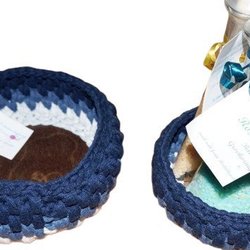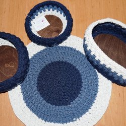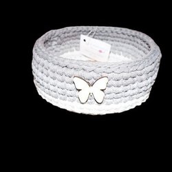 Set av vackra stadiga handgjorda virkade korgar i Mörk grå, Melange grå och Ljus grå färg. Träbotten tillverkar vi av baltisk björk-plywood (jätte hård).
