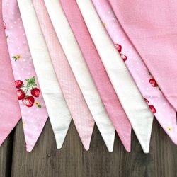 Säljer ett röd vitt vimpelspel med 9 vimplar i bomullstyg. Vimplarna är fastsydda på en vit snadslå/band. Ca 40 cm långa ändar och totalt ca 190-210cm. Se en liknande vimpellängd på sista bilden. Varje vimpel är ca 10-12 cm breda och ca 20-22cm höga.