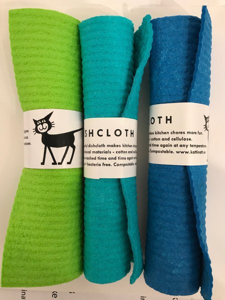 3 st disktrasor i färg enligt bild. Tillverkade av naturliga material och är komposterbara. 70% cellulosa 30% bomull. Perfekt för diskning eller rengöring av ytor i köket. Kan kokas för att bli bakteriefri.