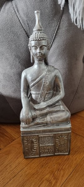 Dekorativ Buddha staty i silverfärg. Perfekt för att skapa en lugn och harmonisk atmosfär i ditt hem.
