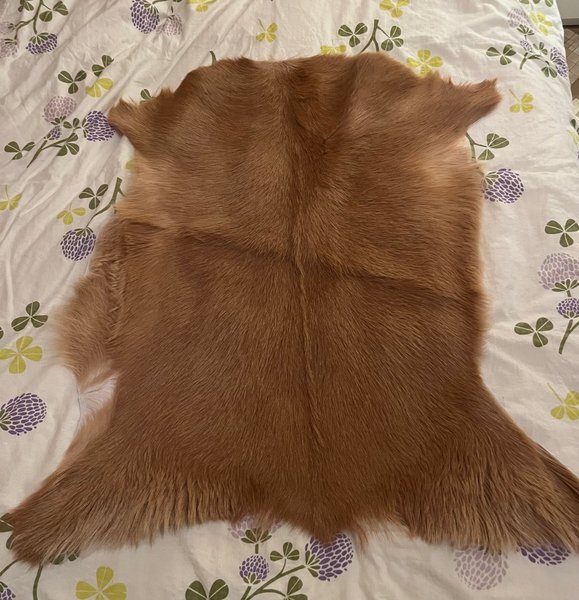En brun getfäll som kan användas som en matta, dekoration, lajv eller att sy något roligt av .