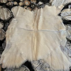 En vit getfäll som kan användas som en matta, dekoration, lajv, eller att sy något roligt av .