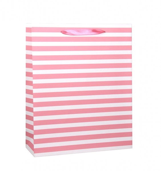 Behändig Rosa/Vit randig Presentpåse