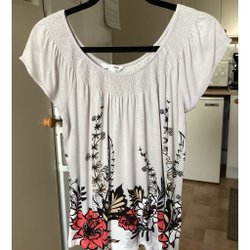 Hängkorg i vitt tyg. Ett stort samt fyra mindre fack, samtliga med dragkedjor. Korgen är i det närmast oanvänd så mycket bra skick. Perfekt för tex badrum eller barnrum, rymmer massor med saker.
