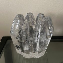 Mini kristalljord/glob på stativ. Det finns en lasergraverad design för kontinenterna. Den är klarfärgad med guldfärgat stativ. Ca 7,5 cm hög.