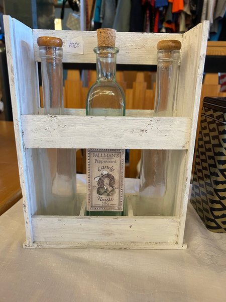 I Shabby chic stil ha i köket med oljor i eller badrummet med tvål. Höjd 28cm. Djup 9cm bred 21cm. Stått för försäljning i butik