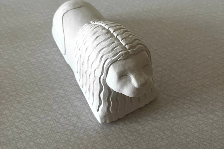 Miniatyr av det numera klassiska Stockholmslejonet som pryder flera gatukorsningar i Stockholms innerstad och närförorter.