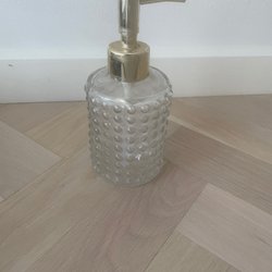 En tvålpump med en elegant design. Pumpen är i silverfärg och flaskan har en grönaktig nyans. Passar bra i badrummet eller köket.