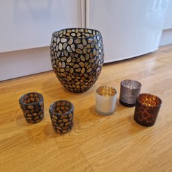 Så charmiga! Små trätempel från butik Raja och ett brevställ i antik stil. Har användts som Blomställ, bestickhållare och kryddställ.