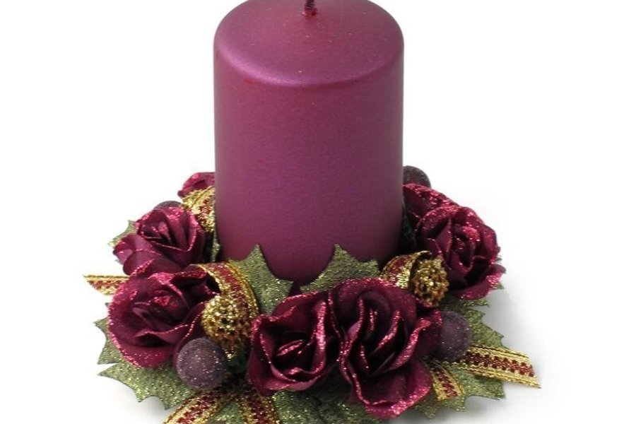 Ljusmanschett med glittriga lila rosor.