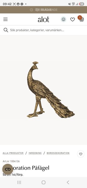 Dekorativ påfågel som är perfekt när du vill ha en exotisk touch på inredningen. Tillverkad av poly. Höjd 54cmAnnonsen gäller: